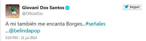 Haciendo frente al comentario de Dos Santos, Belinda le mandó bendiciones junto a una cita del autor argentino Jorge Luis Borges: «Felices los amados y los amantes y los que pueden prescindir del amor». Dos Santos se limitó a responder: «A mi también me encanta Borges… #señales».